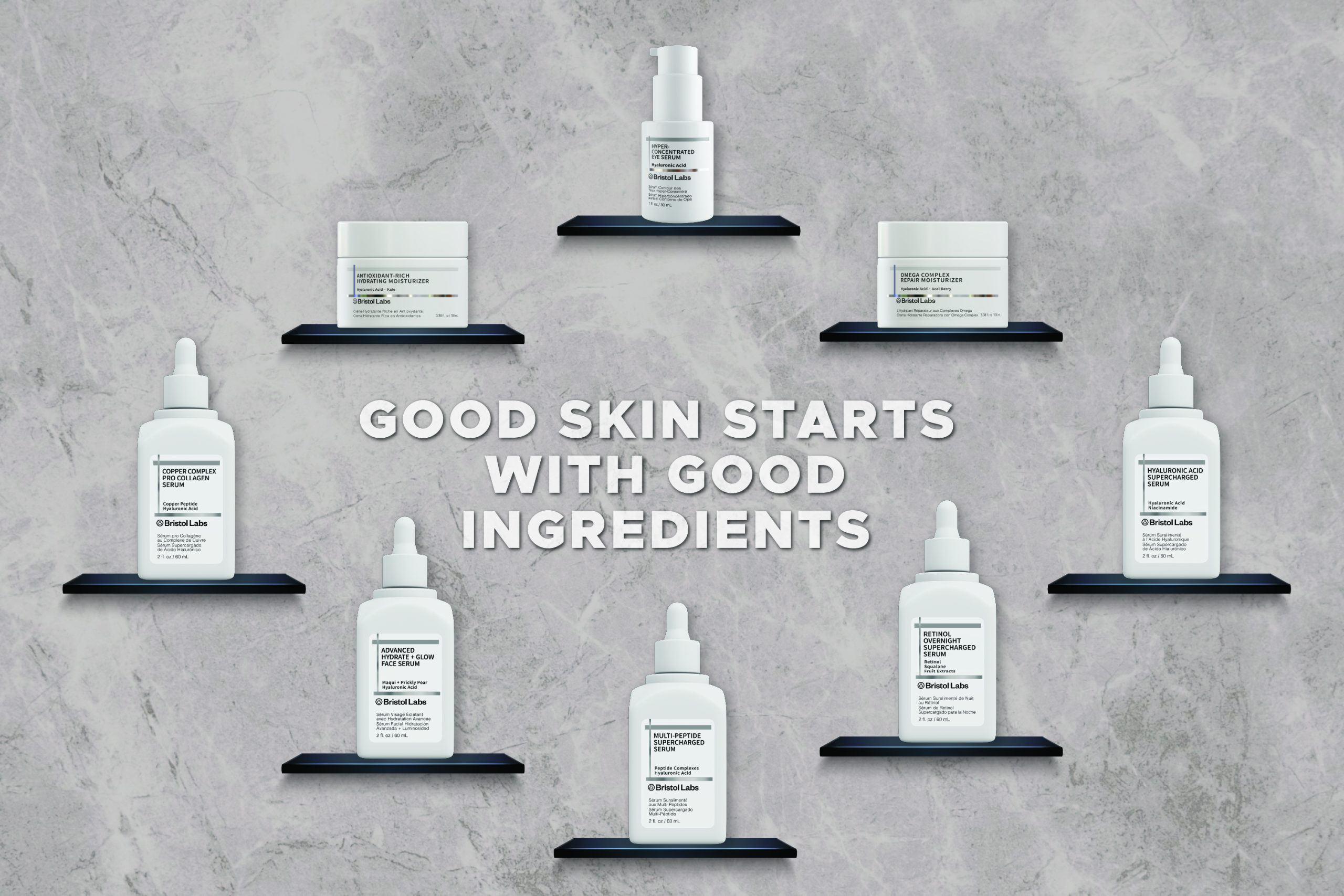 At Bristol Labs, we offer high performing, research backed, laboratory formulated products with skin-loving ingredients